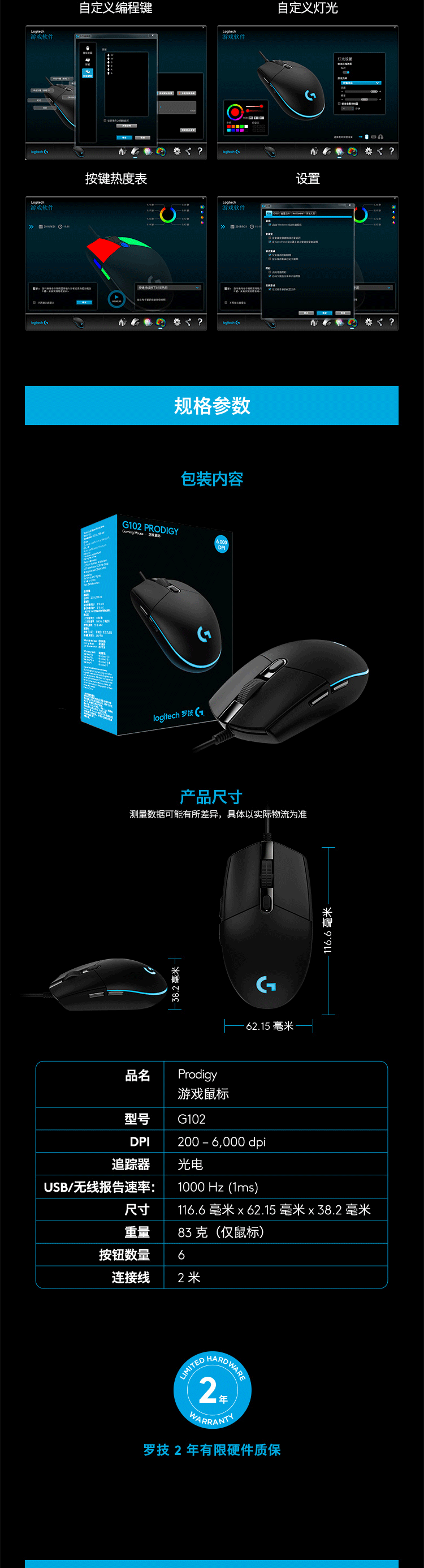 罗技 G102鼠标 黑色