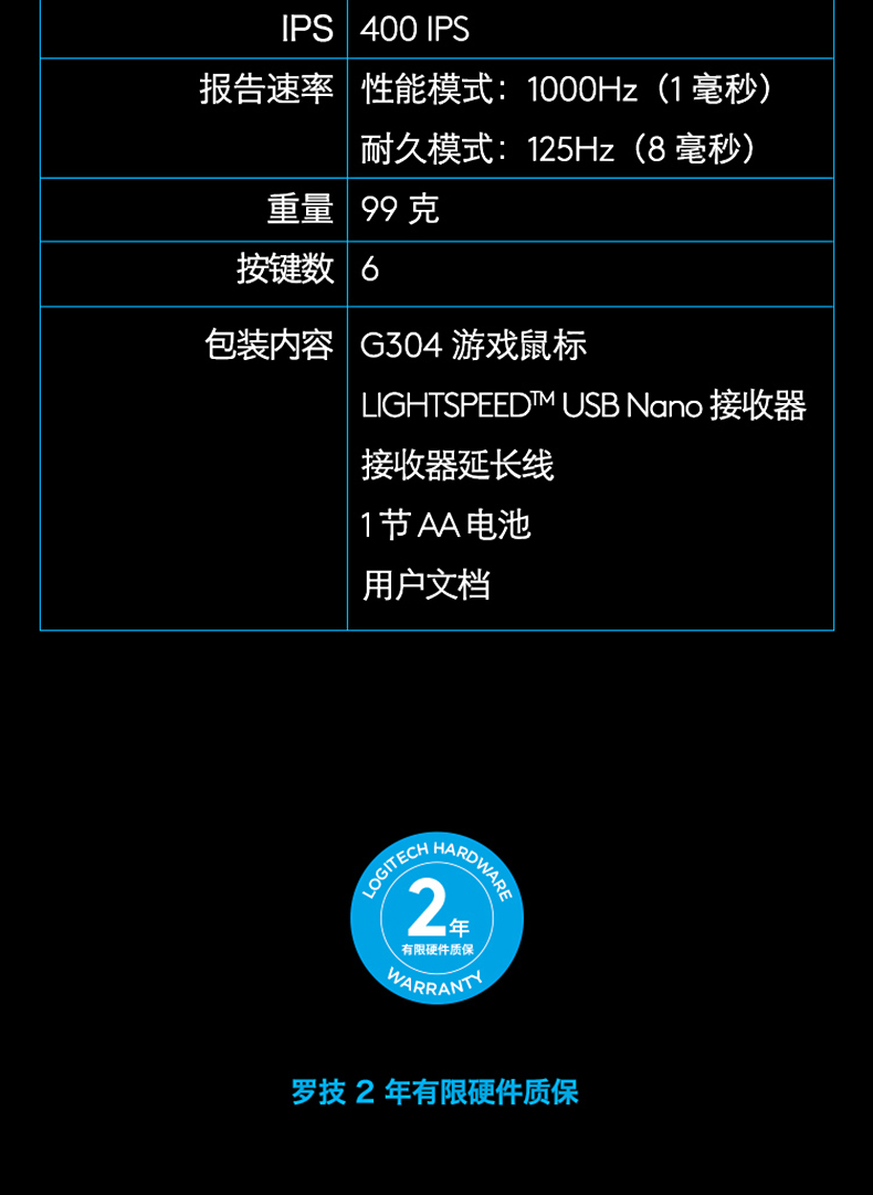 罗技 G304 LIGHTSPEED无线鼠标