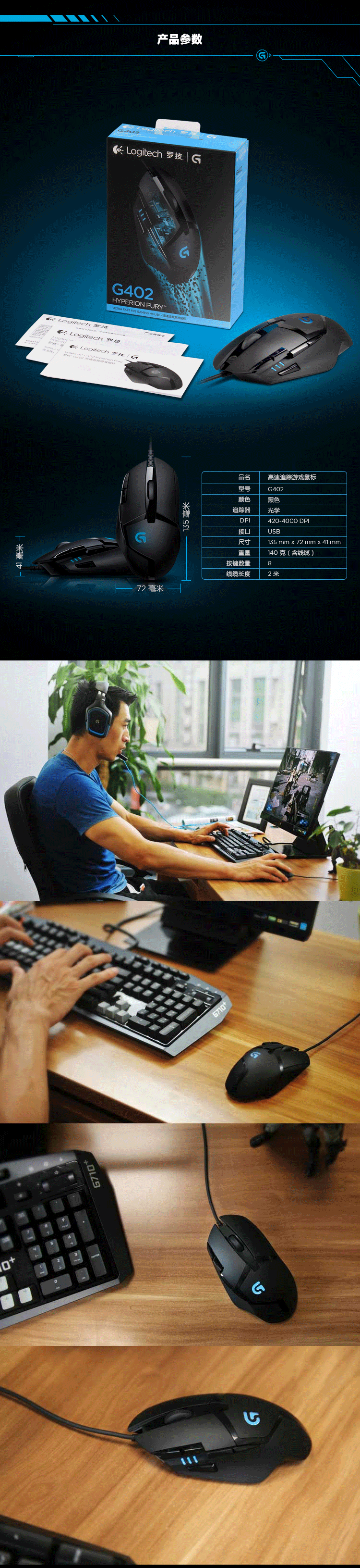 罗技 G402高速追踪鼠标