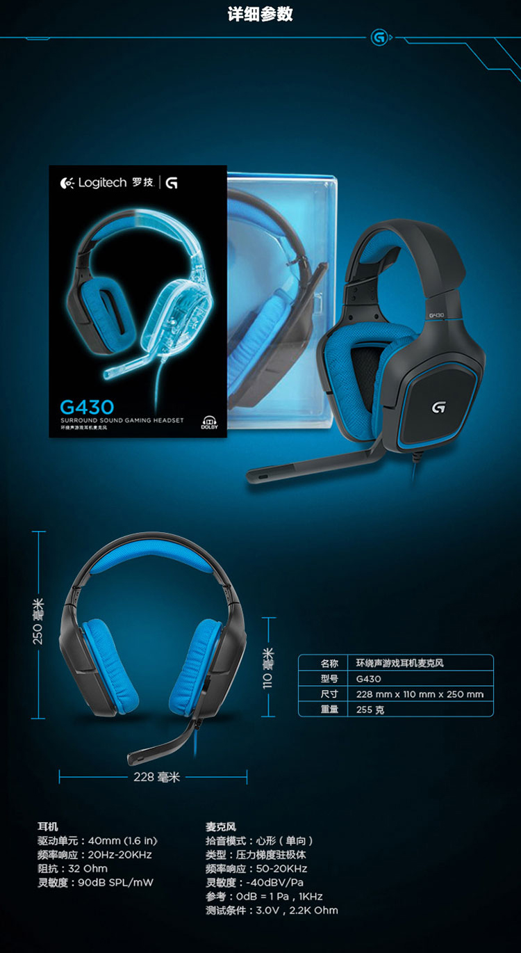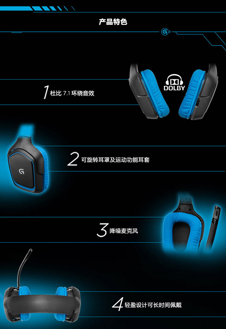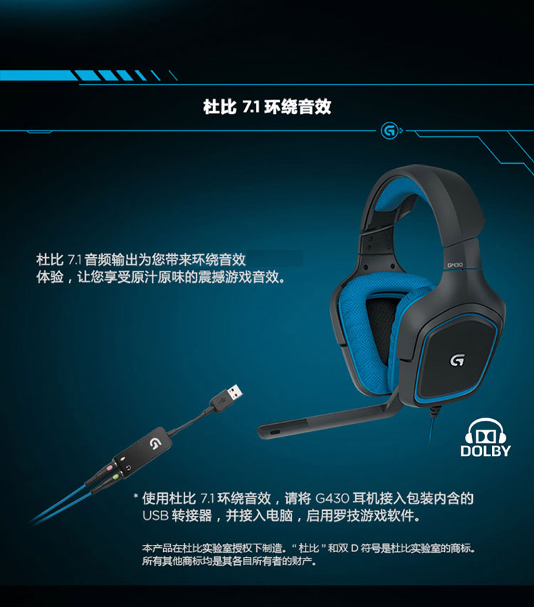 罗技 G430环绕立体声耳机麦克风