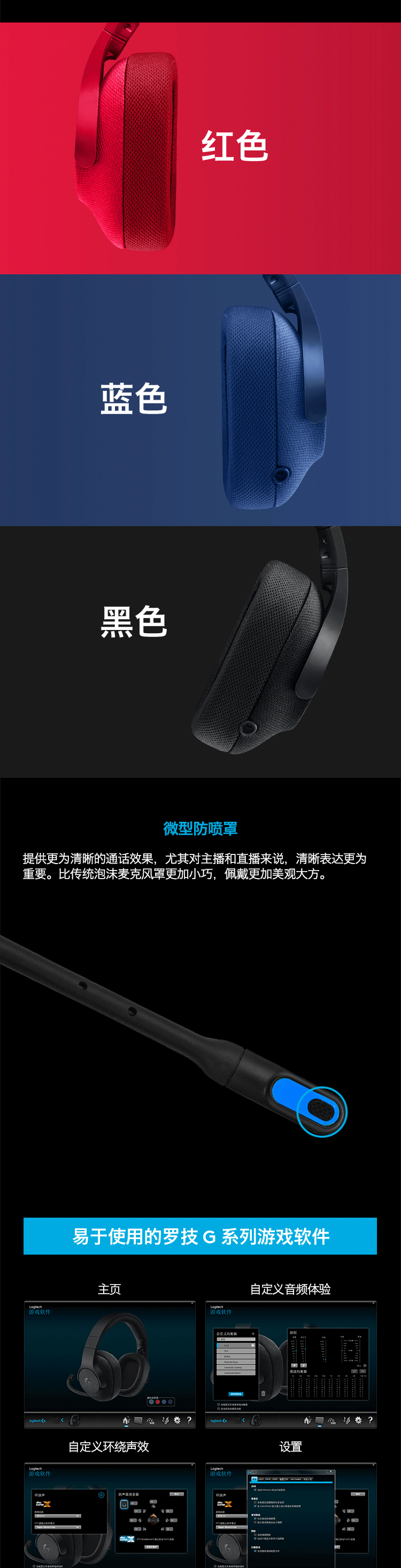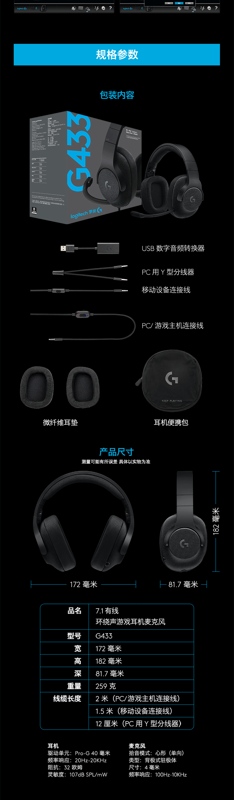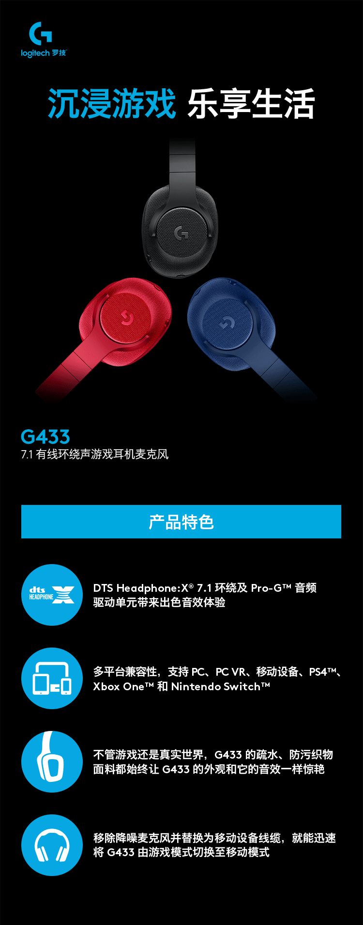 罗技 G433 7.1绕声耳机麦克风 黑色