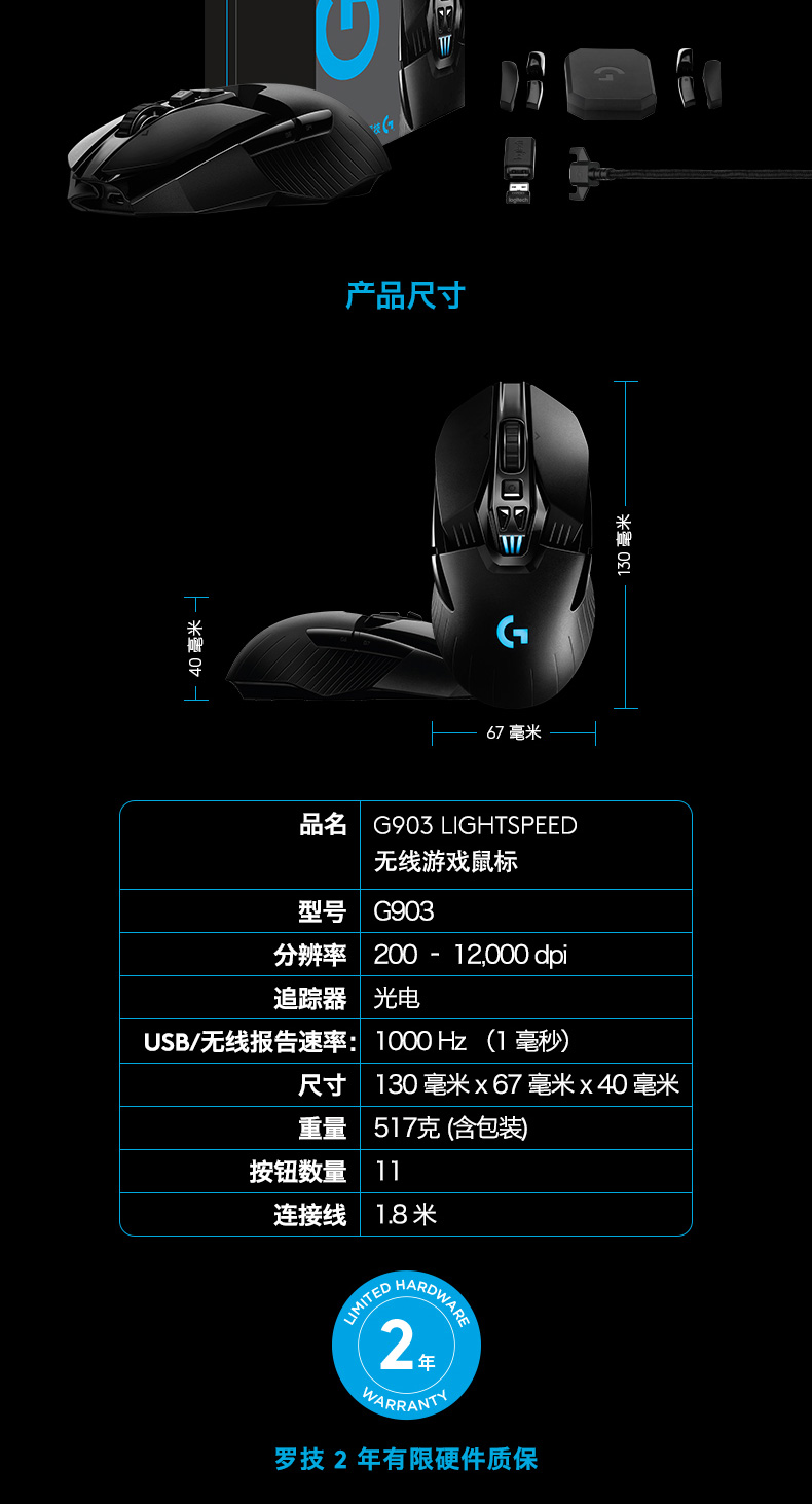 罗技 G903 LIGHTSPEED无线鼠标
