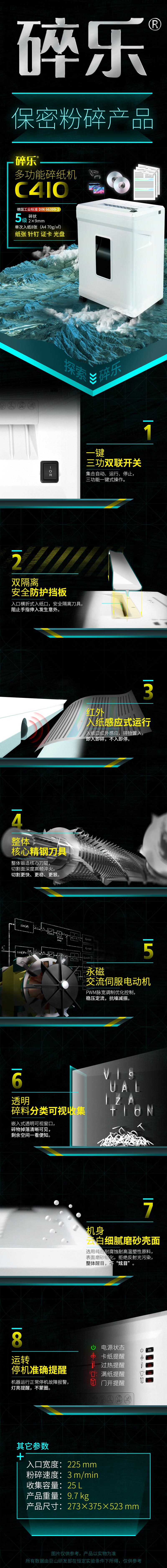 碎乐(Ceiro) C410 德国[DIN 66399]标准5级保密 小型办公碎纸机 多功能碎纸机