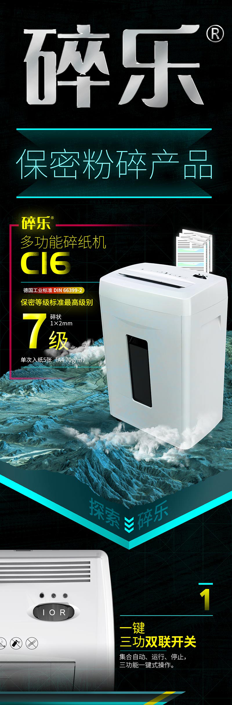 碎乐(Ceiro) C16 德[DIN 66399]7级保密 绝密级办公碎纸机