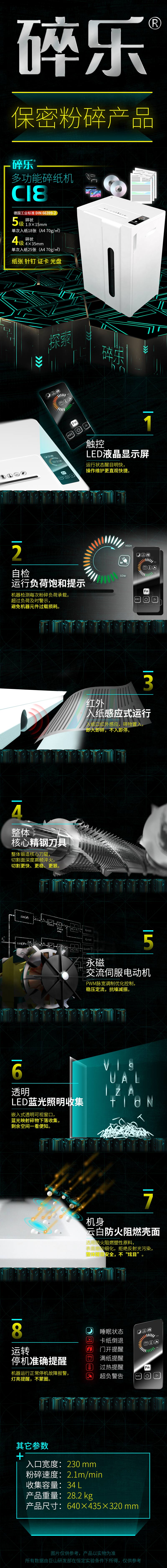 碎乐(Ceiro) C18 德[DIN 66399]4/5级保密 办公碎纸机 多功能碎纸机