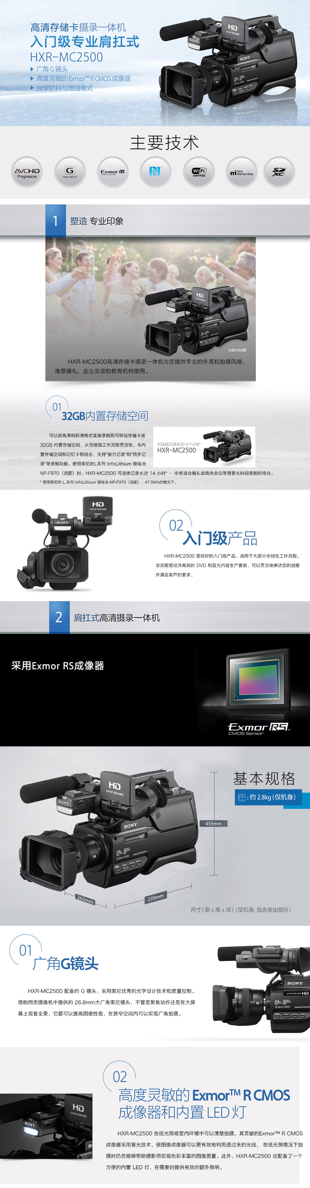 索尼HXR-MC2500C 高清摄像机