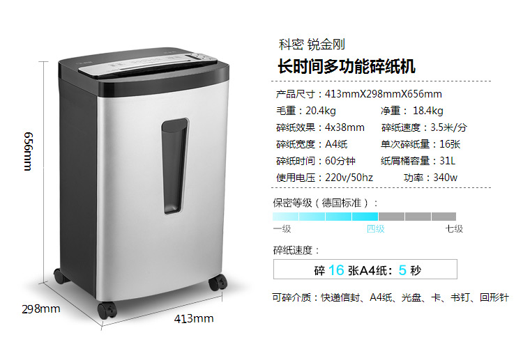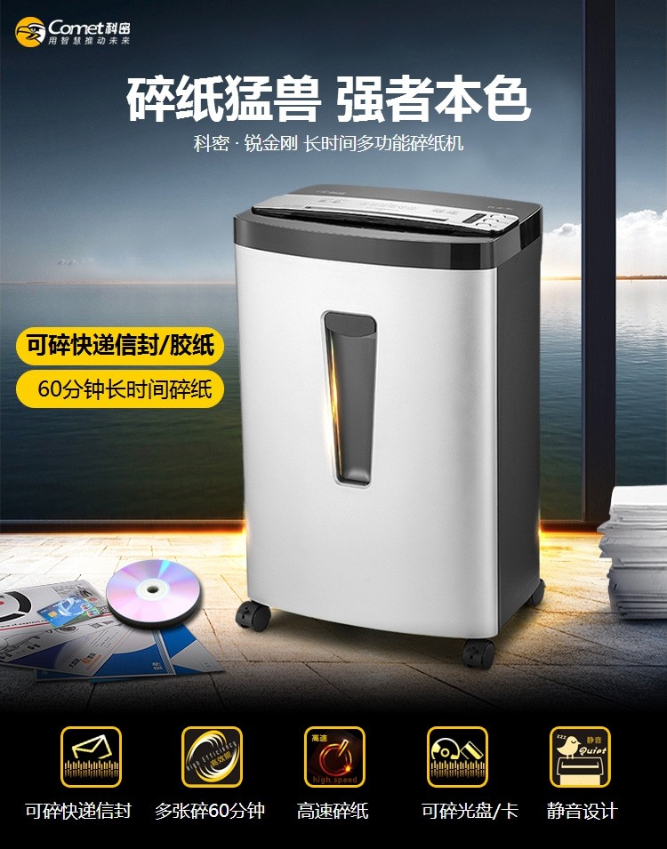 科密锐金刚碎纸机 长时间多功能商务文件粉碎机 碎光盘卡文件袋