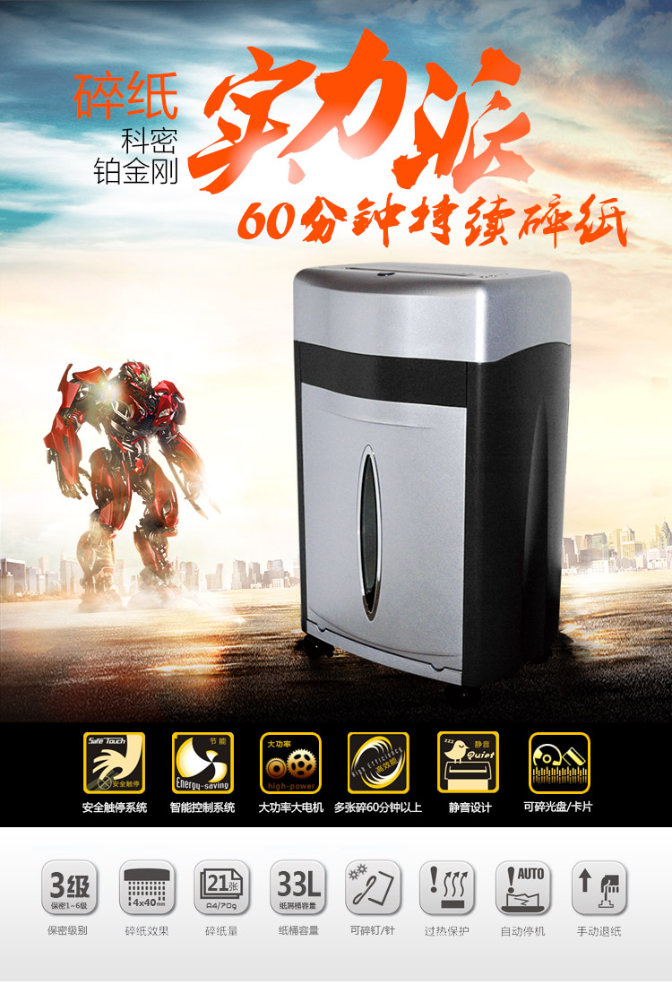 科密铂金刚碎纸机 长时间中大型商务办公用高速大容积量多功能大功率