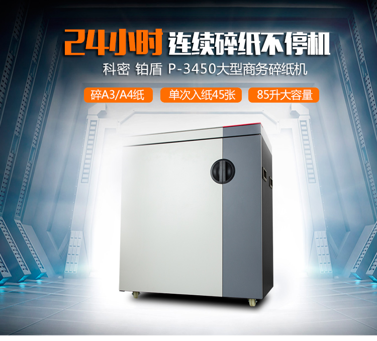 科密COMET 铂盾P-3450大型办公碎纸机A3口 24小时不停机 单次45张 85升