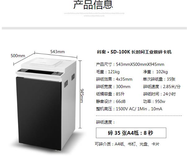 • 科密 SD-100K 工业型碎卡销毁粉碎机 24小时工作 单次100张碎卡入口 可碎纸/光盘