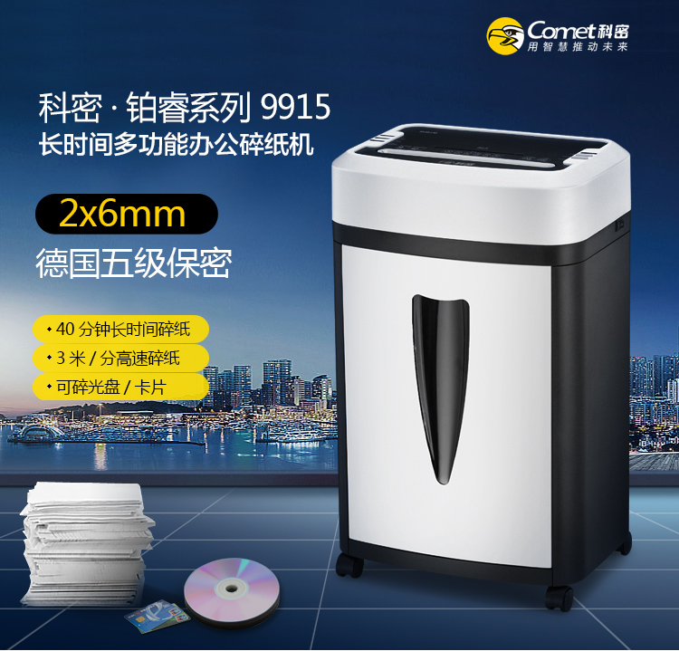 科密(Comet)9915碎纸机德国5级保密长时间高速商用办公碎文件卡光盘粉碎机