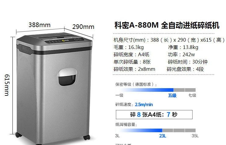 科密A880M碎纸机 9912碎纸机酷印 科密A880M碎纸机