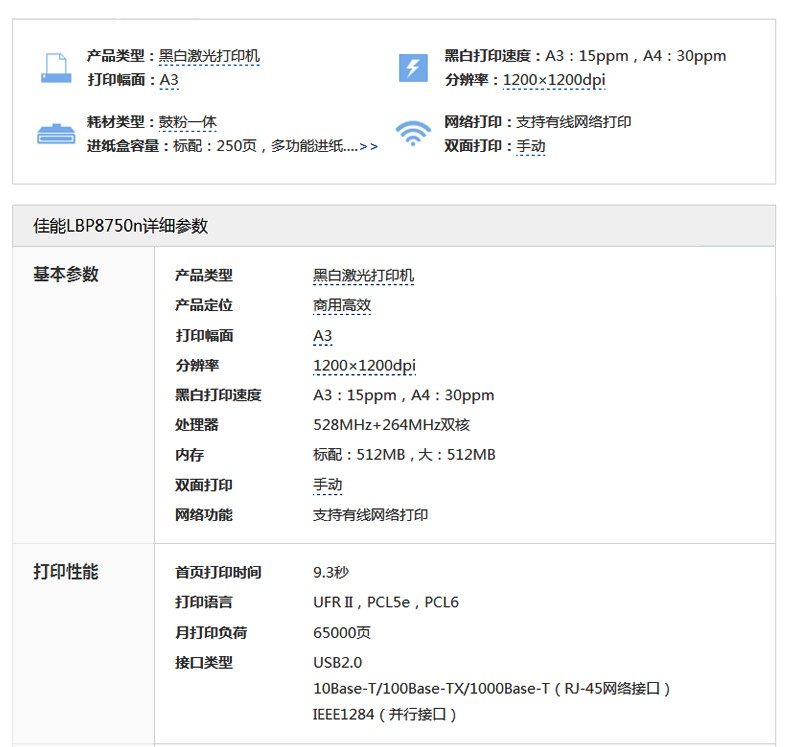 • 佳能 (Canon)LBP8750n A3幅面黑白激光打印机