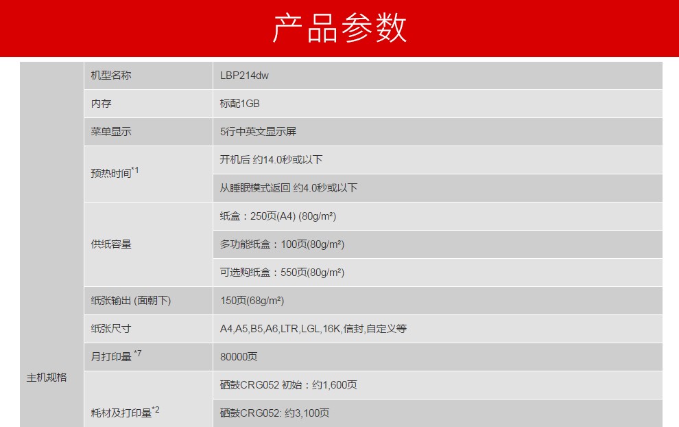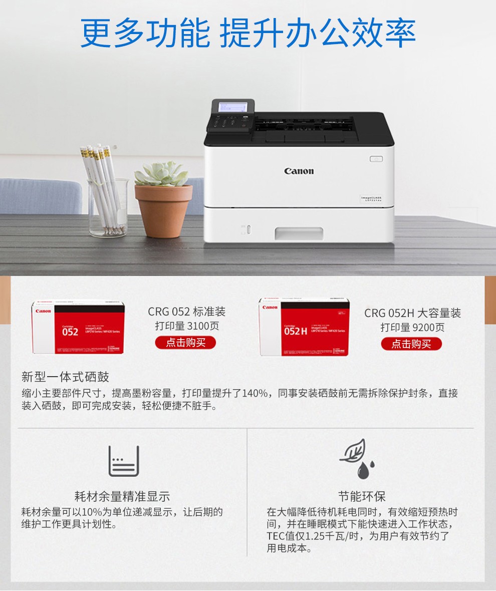 佳能 (Canon)LBP214dw A4幅面黑白激光打印机