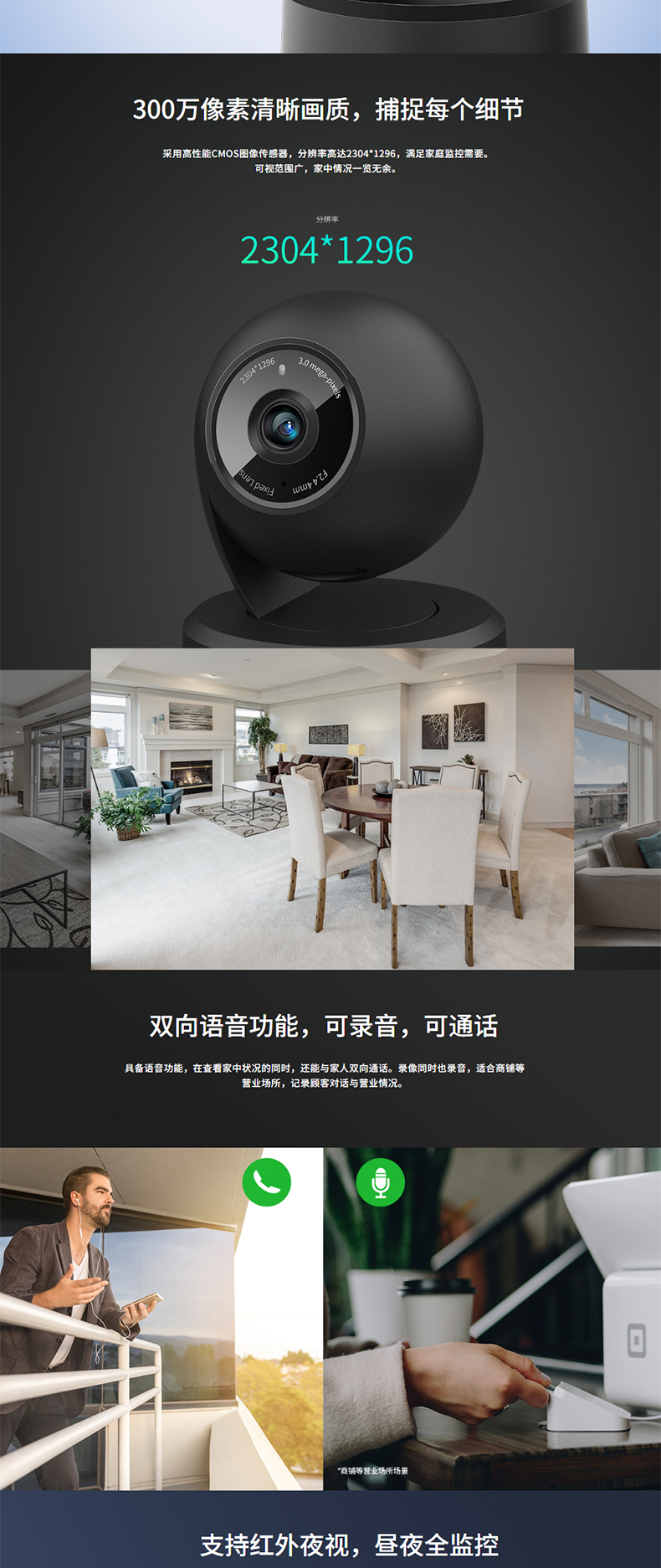 TP-LINK监控摄像头TL-IPC43AN-4 300万高清无线远程WIFI双向语音