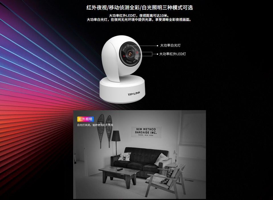 TP-LINK双向语音300万黑光全彩云台无线网络摄像机TL-IPC43AN-WB4