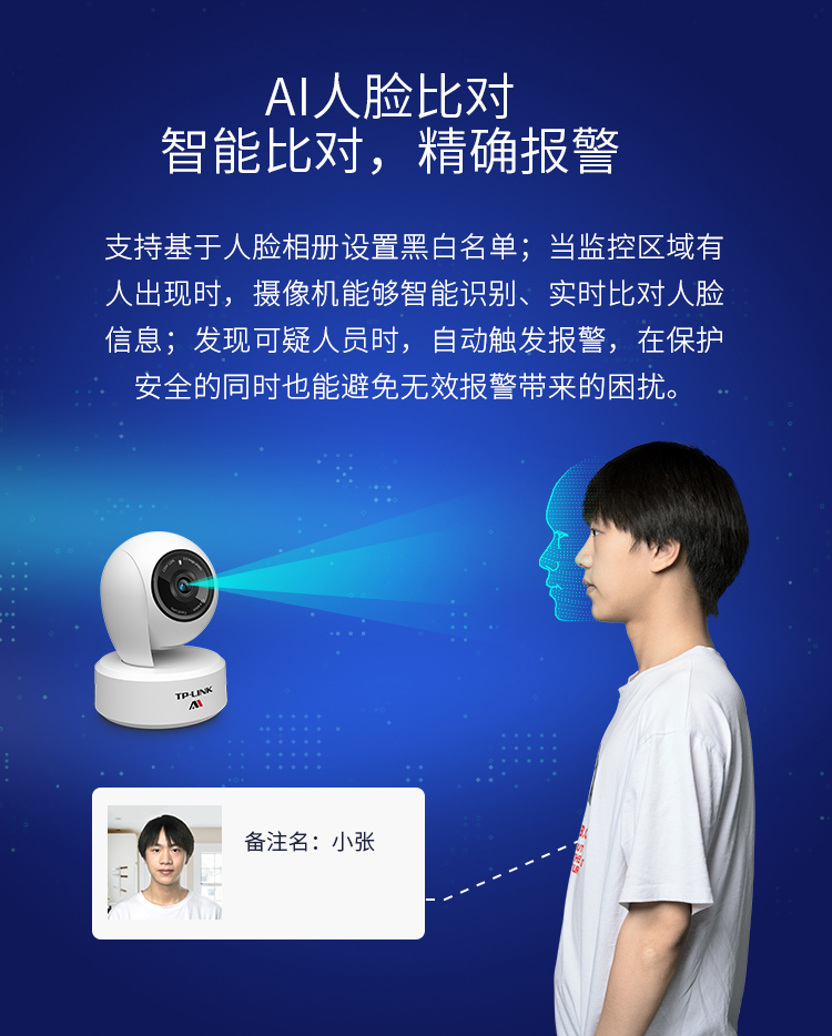 TP-LINK TL-IPC43AN AI版智能WiFi无线网络摄像头 家用远程监控器