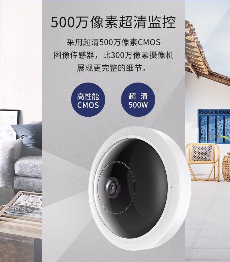 TP-LINK 普联 TL-IPC55A 500万鱼眼无线监控摄像头360度全景超清红外夜视手机远程双向语音 智能网络摄像机