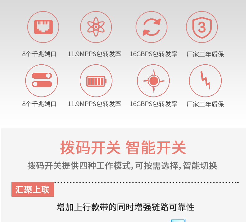 H3C华三 Mini S8G-PWR-U 8口全千兆非网管POE供电企业级交换机网络监控集线分流器