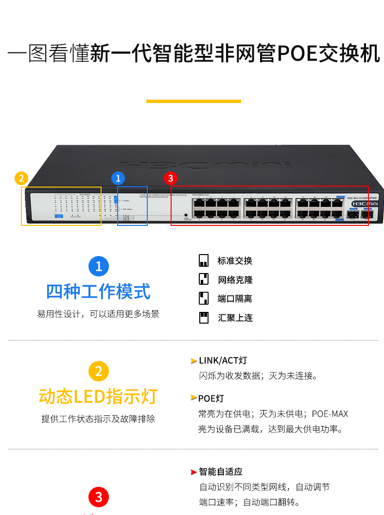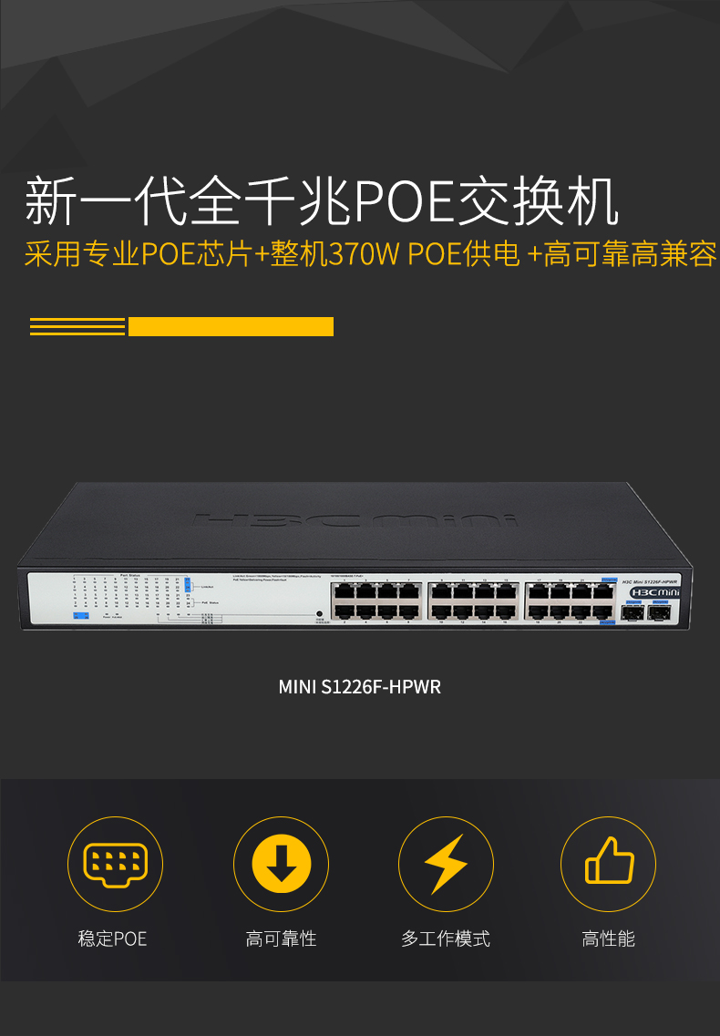 华三H3C S1226F-HPWR 24口非网管交换机 酒店宾馆全千兆POE供