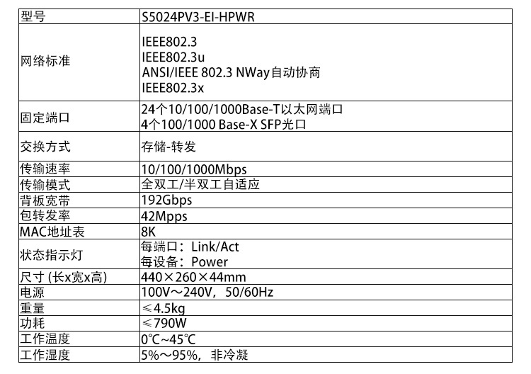 H3C华三S5024PV3-EI-PWR 24口全千兆POE交换机管理型企业级机架式
