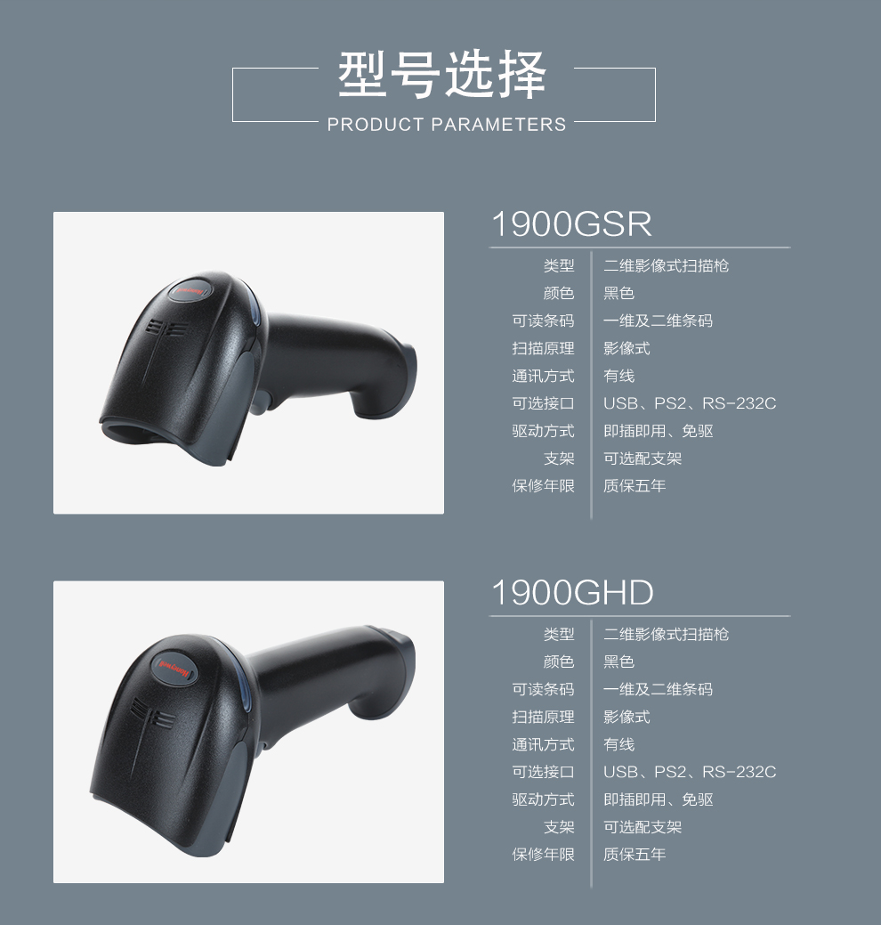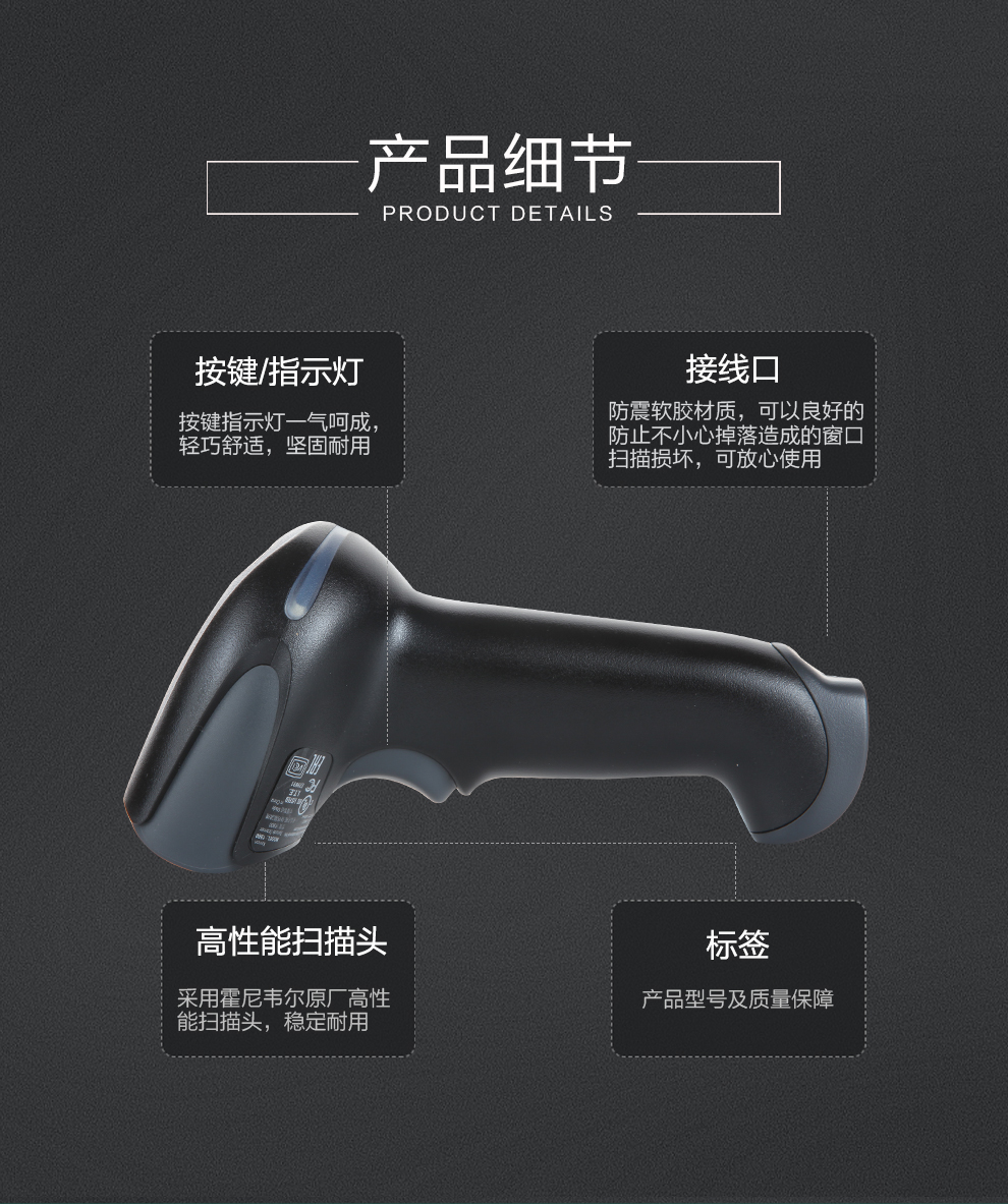 霍尼韦尔(Honeywell)1900 条码扫描枪 二维码扫描器 工业扫码枪 高密版 串行口