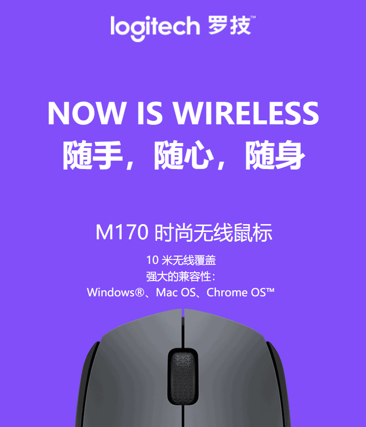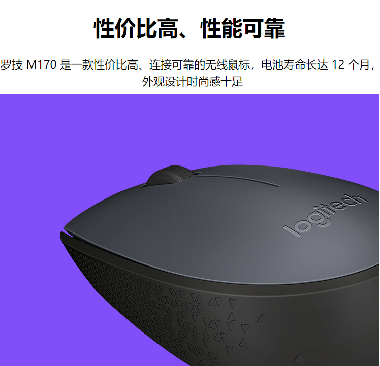 罗技(Logitech)M170(M171) 鼠标 无线鼠标 办公鼠标 对称鼠标 灰色 带无线2.4G接收器
