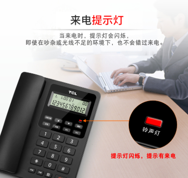 TCL 电话机座机 固定电话 办公家用 大屏幕 来电显示 免电池 HCD868(60)TSD 黑色