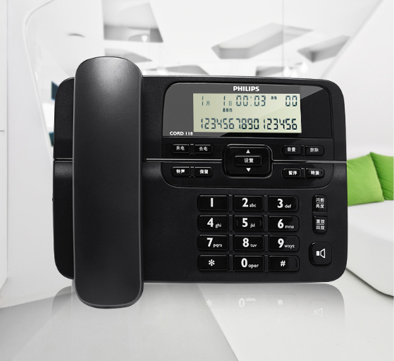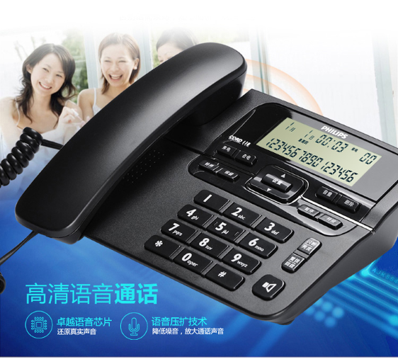 飞利浦(PHILIPS)电话机座机 固定电话 办公家用 来电显示 双接口 免电池