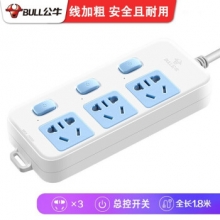 公牛排插3插孔独立控制分控开关插排/插线板/接线板/拖线板/家用插板带线电源插座 3插位 独立分控开关 短线1.8米314