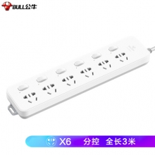 公牛(BULL)GN-313 新国标插座/插线板/插排/排插/接线板/拖线板 6位分控全长3米 超功率保护插座