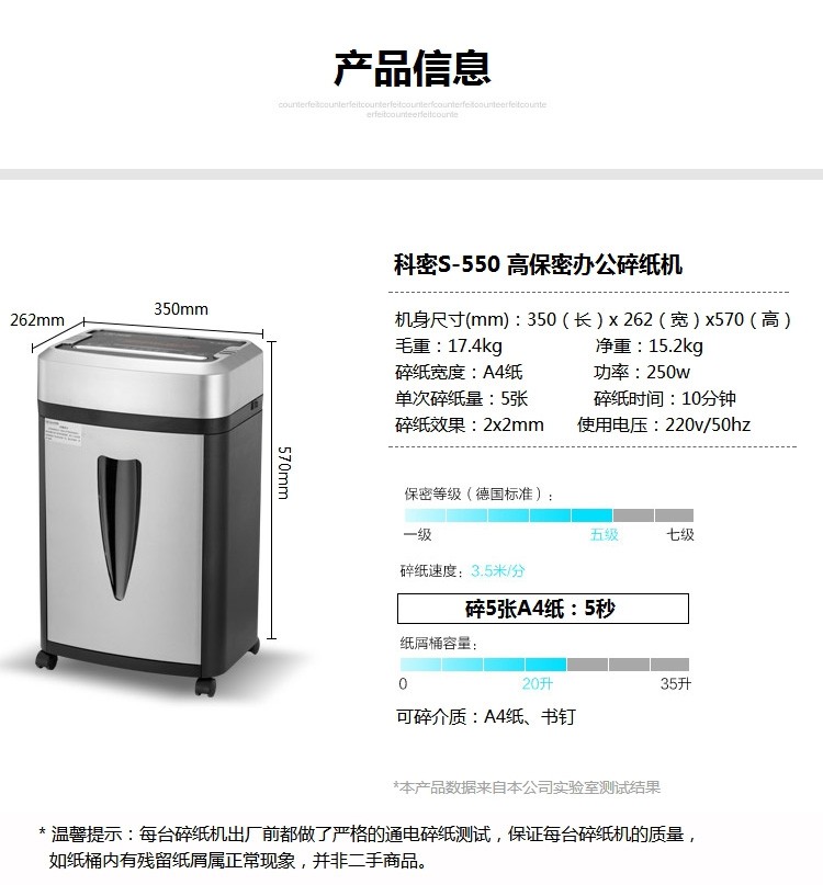 科密S-550高保密s550碎纸机 办公粉碎机 销毁机