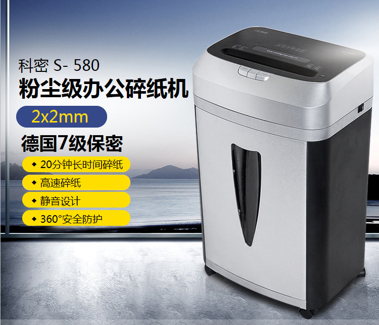 科密S-580碎纸机 粉尘级细小颗粒高保密中大型大容量办公8张