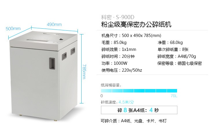 科密S-900D 多功能大型长时间高速办公碎纸机 光盘粉碎机