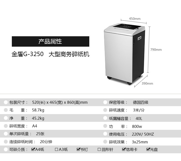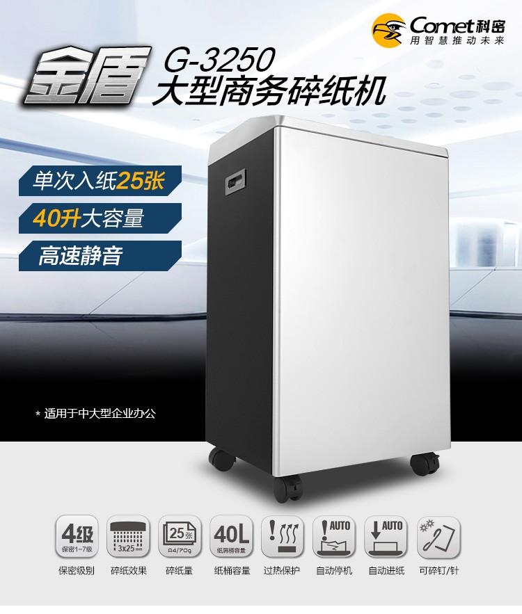 科密comet)金盾G-3250碎纸机 大功率容量大型商务办公用25张40升碎纸光盘信用卡