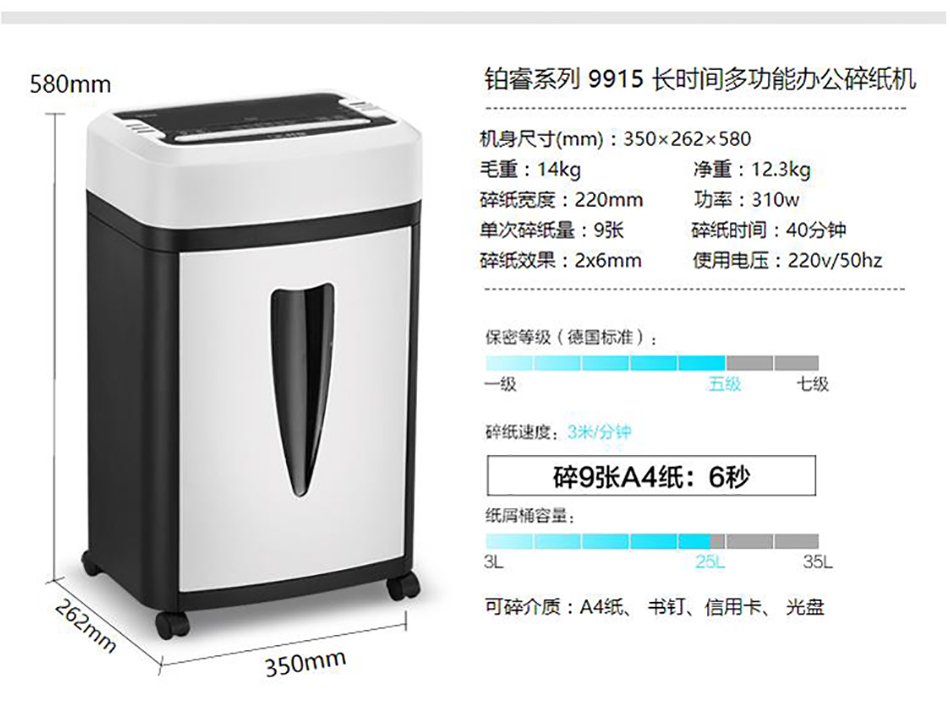科密(Comet)9915碎纸机德国5级保密长时间高速商用办公碎文件卡光盘粉碎机