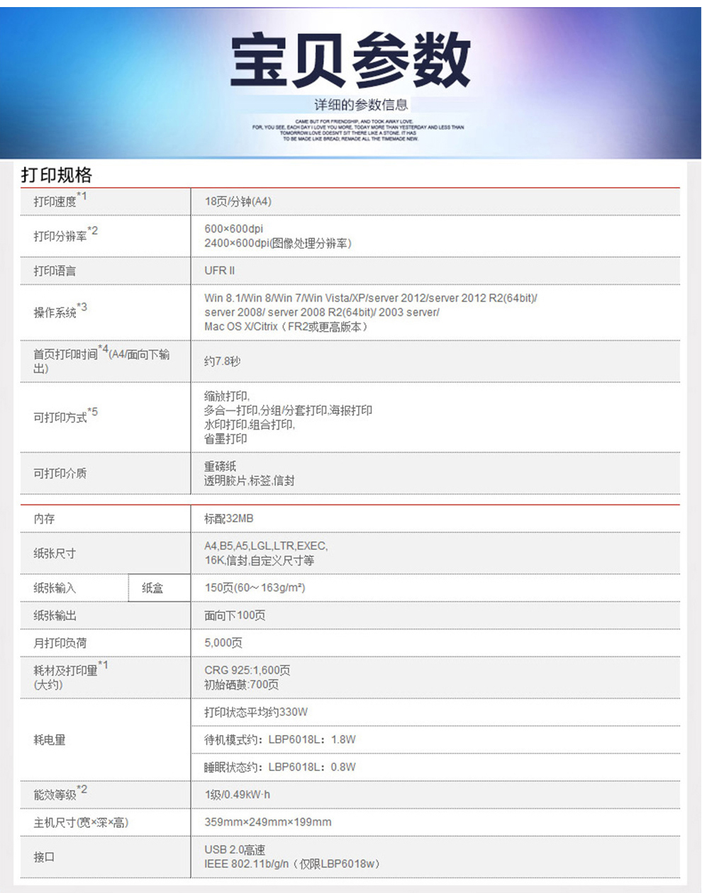 佳能(Canon)LBP 6018L A4幅面黑白激光打印机
