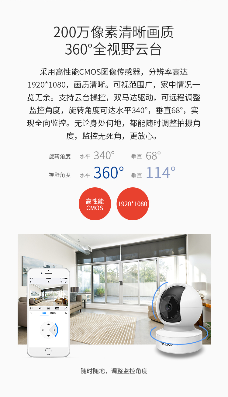 TP-LINK TL-IPC42CE-4 安防监控家用WiFi无线网络摄像头夜视高清摄像机器手机APP远程控制旋转双向通话监控器