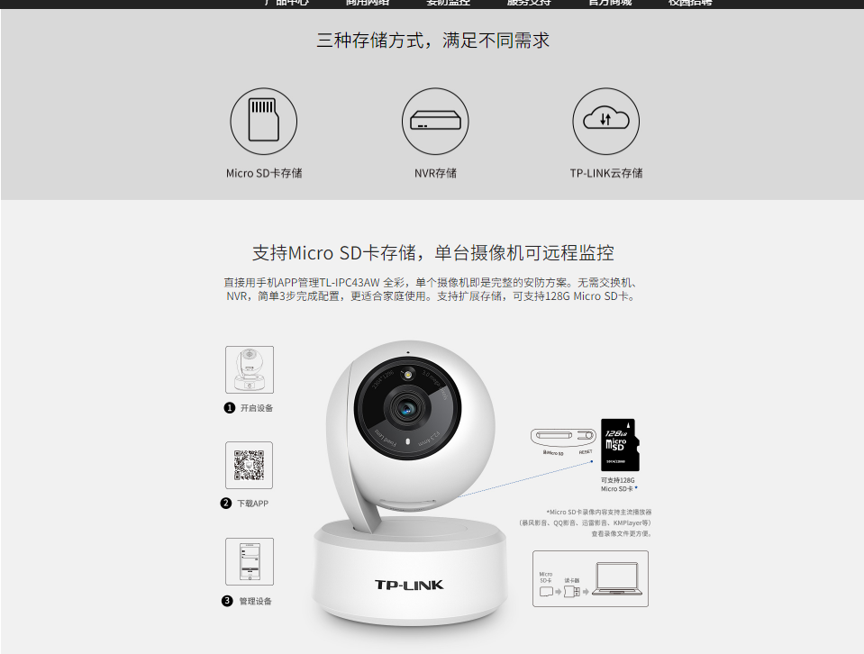 TP-LINK TL-IPC43AW全彩双向语音300万云台无线wifi网络摄像机