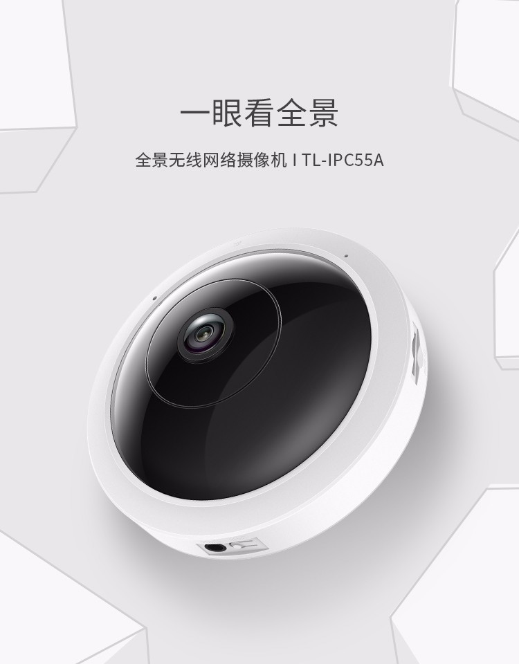 TP-LINK 普联 TL-IPC55A 500万鱼眼无线监控摄像头360度全景超清红外夜视手机远程双向语音 智能网络摄像机