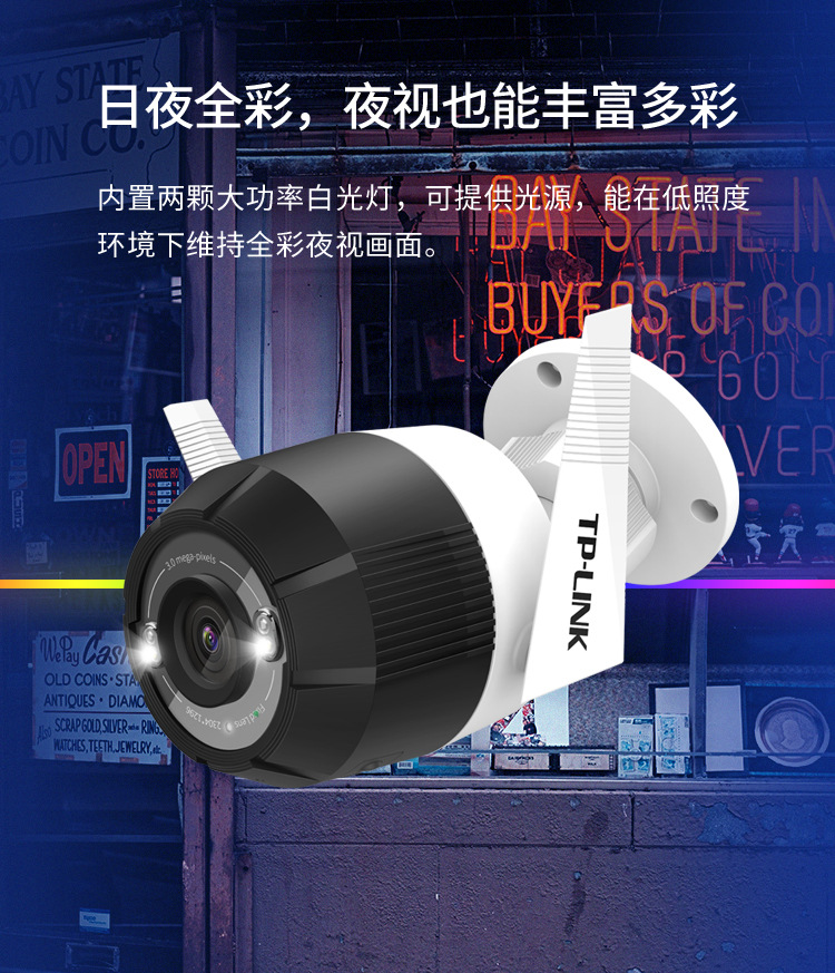 TP-LINK TL-IPC63NA-4 300万全彩警戒无线监控网络摄像机远程室外