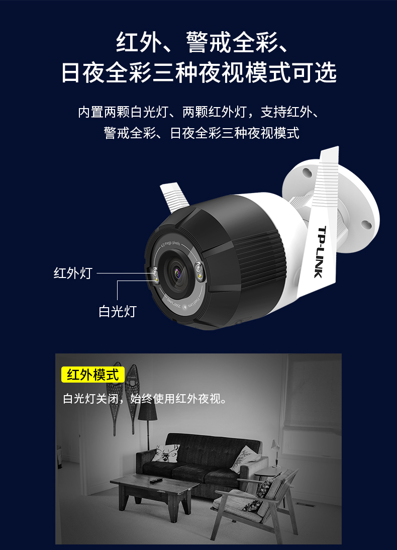 TP-LINK普联TL-IPC64NA-4 400万全彩警戒无线网络摄像机家用日夜红外夜视双向语音摄像头wifi手机监控 监控器