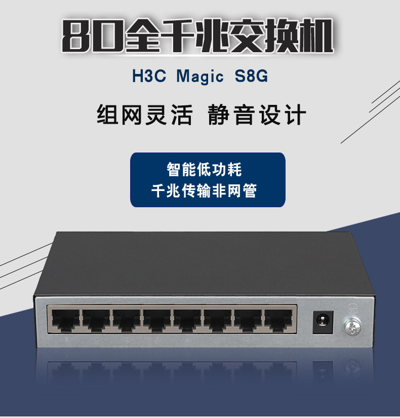 H3C华三 MINI S8G-U 8口千兆交换机 家用桌面式铁壳稳定高速网络网线分线器 监控宽带集线交换器