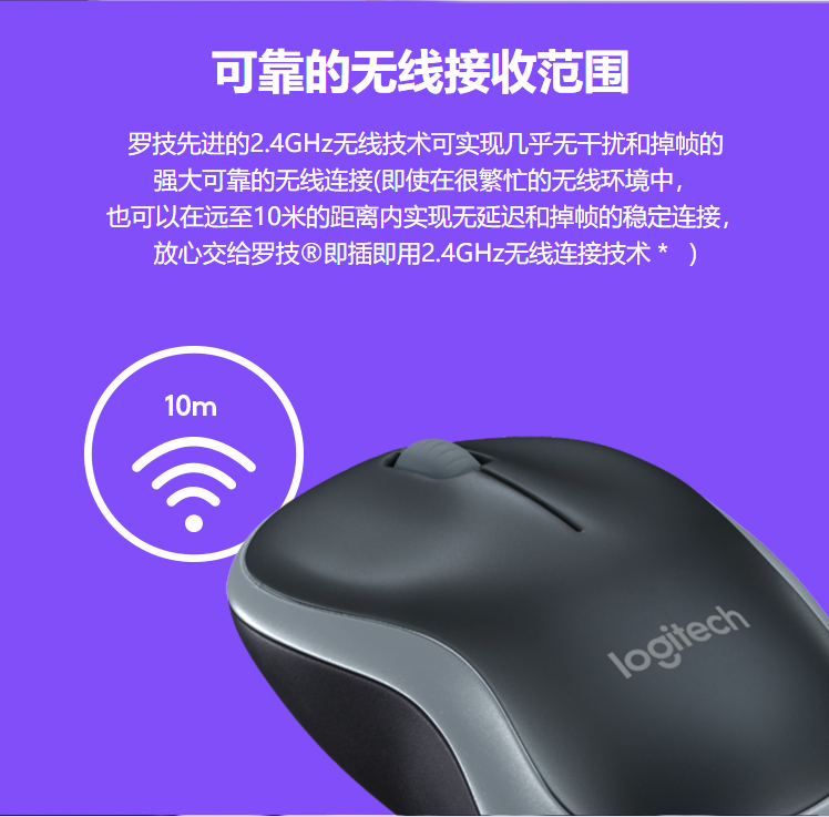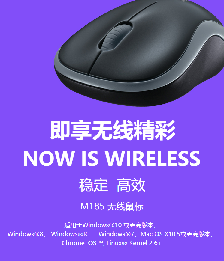 罗技(Logitech)M185(M186) 鼠标 无线鼠标 办公鼠标 对称鼠标 黑色灰边 带无线2.4G接收器