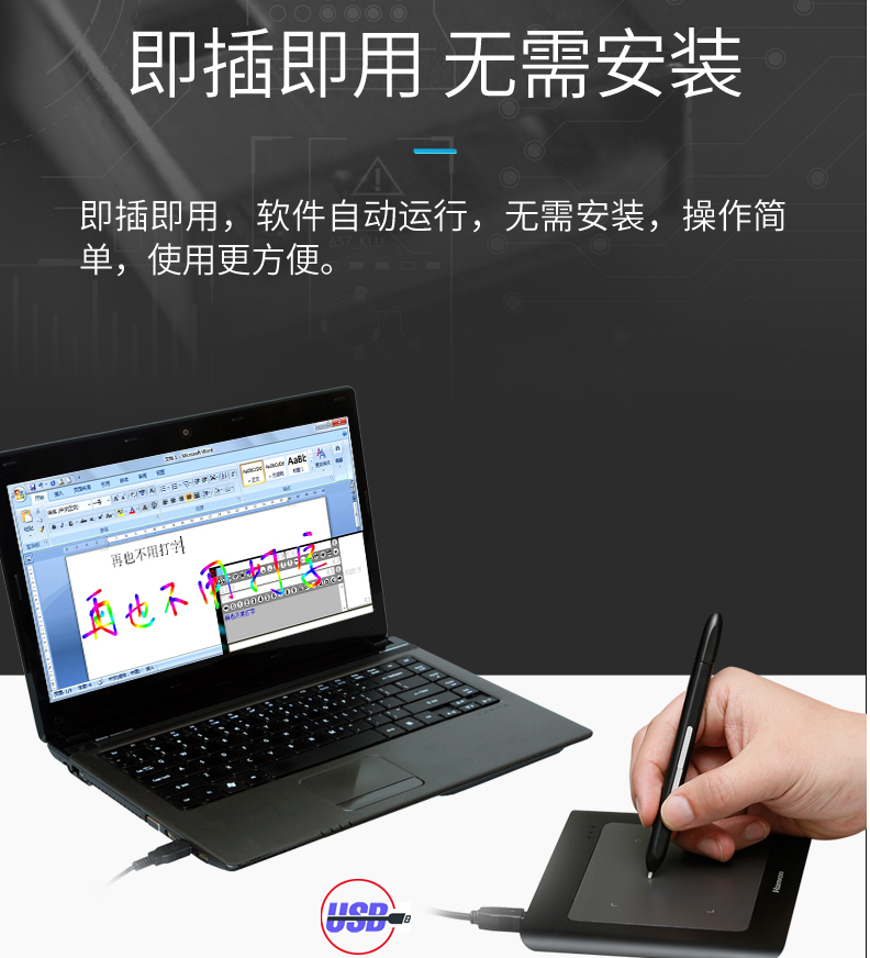 汉王(Hanvon)免驱挑战者免安装 远程教育 网课电子白板演示 免驱手写板 电脑写字板 电脑手写板 支持win10
