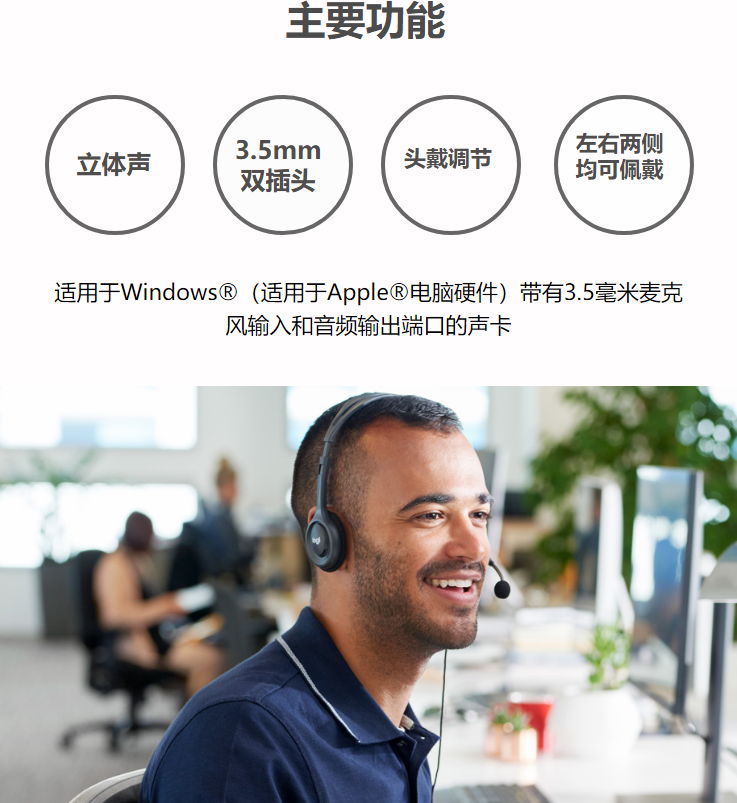 罗技(Logitech) H110 多功能头戴式立体声耳机耳麦 教育办公培训耳麦