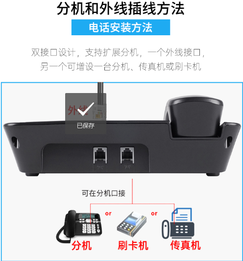 飞利浦(PHILIPS)电话机座机 固定电话 办公家用 来电显示 双接口 免电池