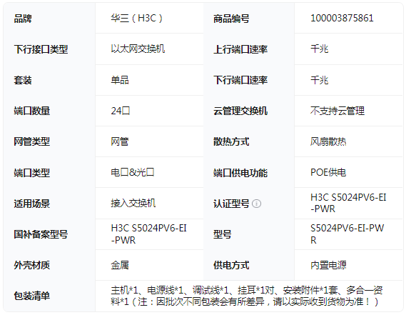 华三S5024PV6-EI-PWR 24口千兆电+4千兆光纤口强二层全网管企业级网络交换机 POE供电240W/智能堆叠